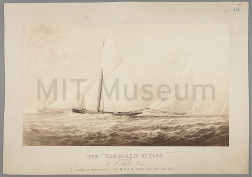 The Vanguard 60 Tons A sepia, photo-processed reproduction print of a painting of the cutter yacht …
