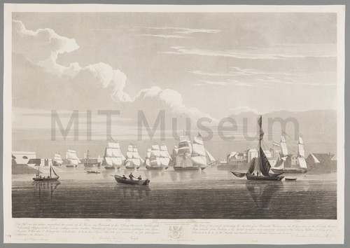 This Series of three prints, representing the departure from Portsmouth Harbour on … Black and white lithograph depicting a fleet of Dutch merchant ships leaving …