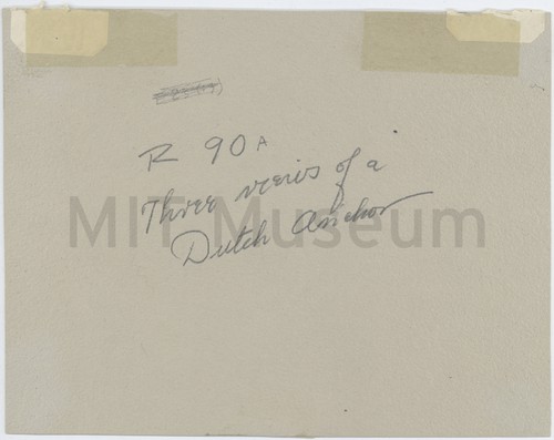 Three views of a Dutch Anchor Two leaves of paper, each printed with numbered diagrams of anchors, joined …