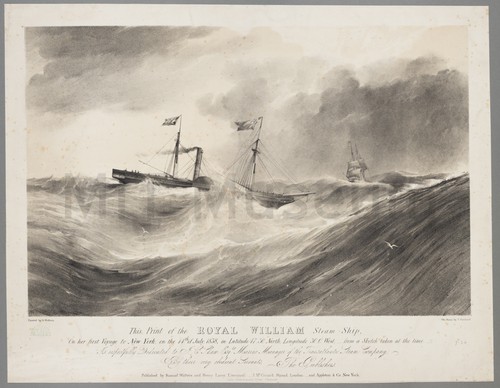 This Print of the Royal William Steam Ship On her first Voyage … A tinted lithograph of the SS 'Royal William' navigating through rough waves …