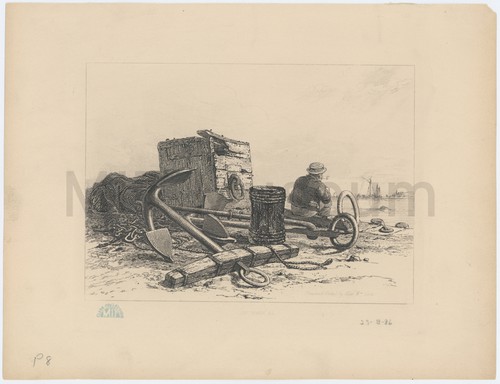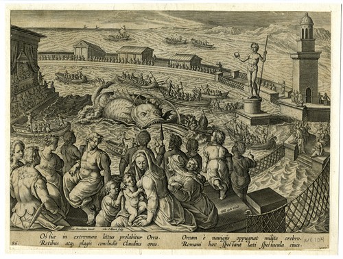 An Orca at Ostia (Latin inscription) The engraving, after an image by Stradanus, depicts the edge of a …