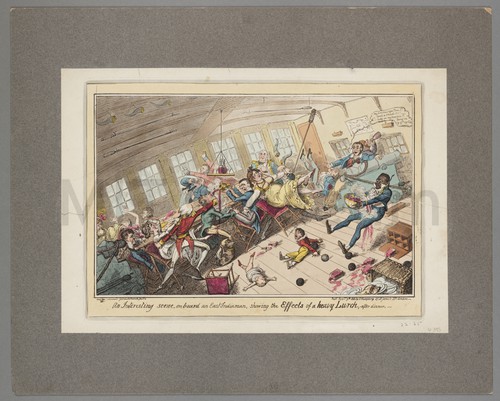 An Interesting Scene, on board an East-Indiaman, showing the Effects of a … A chaotic scene in a grand cabin on board an East Indiaman. …