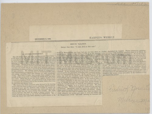 An Old Whaler Hove Down for Repairs, Near New Bedford Engravibng from Harper's Weekly (Dec. 9, 1882) showing a group of men …