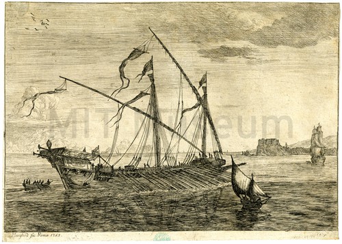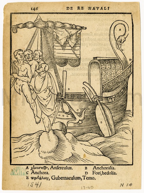 Ancient Greek and Roman Galleys Page fragment from 1541 edition of a treatise on laws governing navitation …