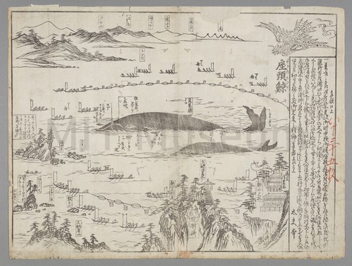 An advertisement of an event in which was enacted the catch of … A woodcut broadside advertising an event reenacting the catching of whales in …