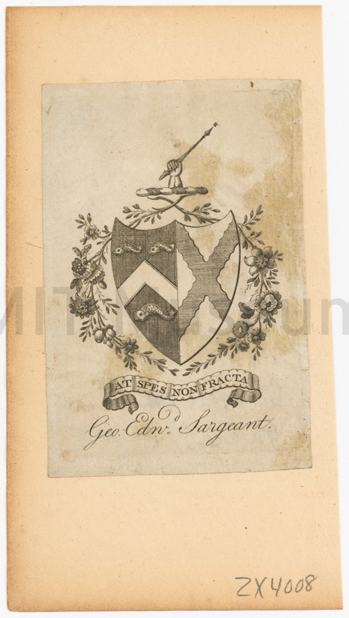 Whale and Dolphin Coat of arms, probably used as a bookplate, of George Edward Sargeant. …