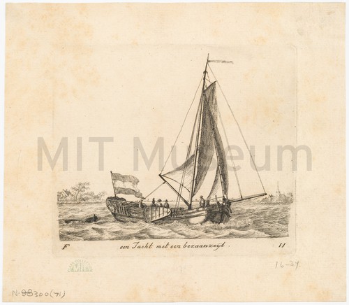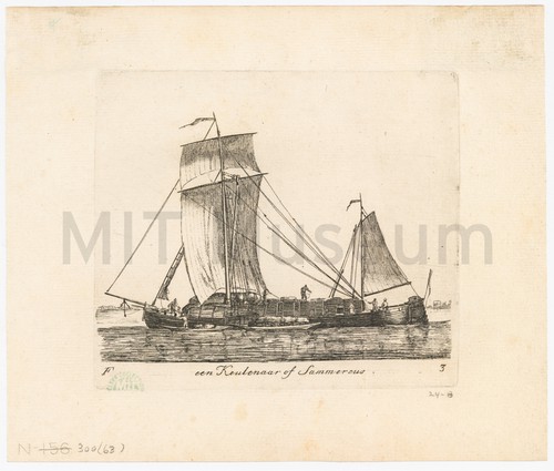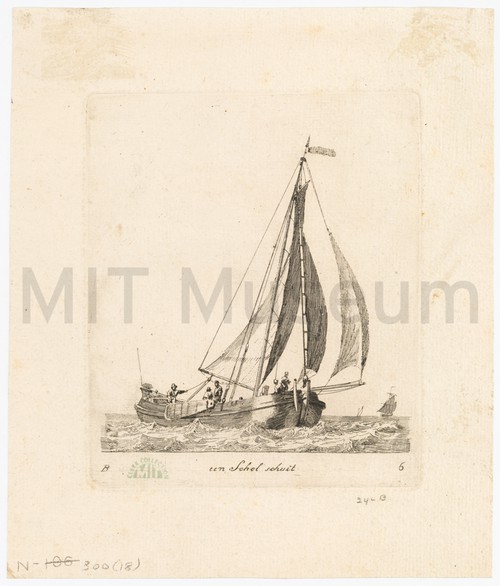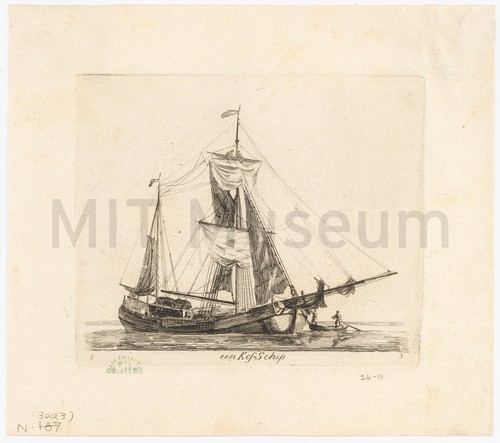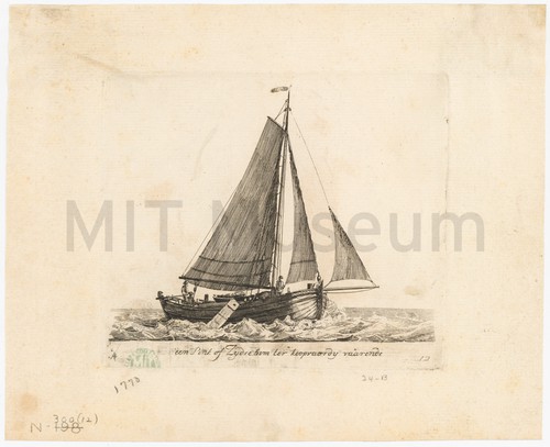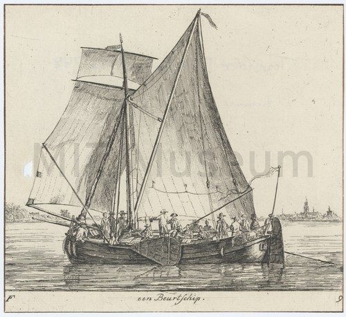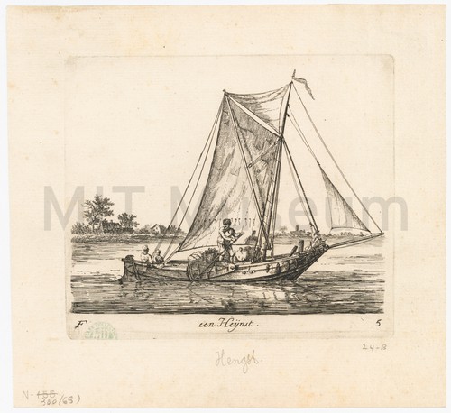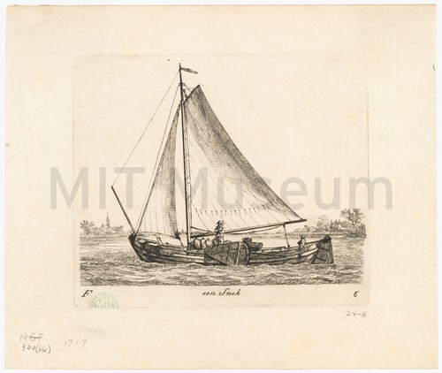 een Snik Etching depicting a view of a snik--a singlemasted ship used in inland …
