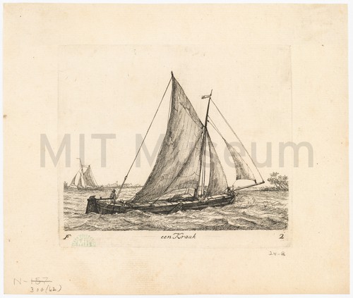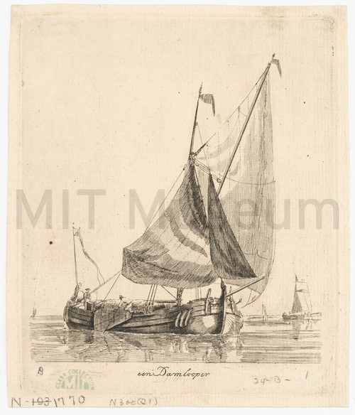 een Damlooper Etching depicting a three-quarters bow view of a damlooper (a catchall name …