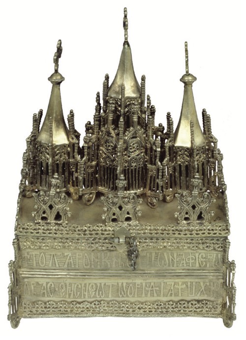 Cercueil en forme d'église, offrande de Georgios, évêque de Radauți (Moldavie) Lorsque le diacre procède à l'encensement de l'église, il tient généralement dans …