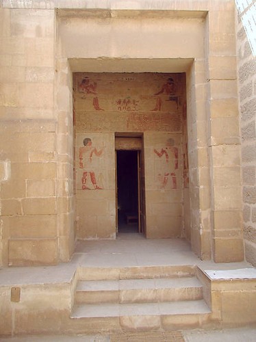 Gisr el-Mudir (Arabic:جسر المدير, "bridge of the chief") also known as the Great Enclosure, is one of the oldest known stone structures in Egypt, located at Saqqara only a few hundred metres west of the Step Pyramid and the Buried Pyramid. The function of the space is not yet clear. The structure consists of a rectangular wall oriented north-south and measuring about 650 by 350 metres. The walls consist of two outer walls made of roughly hewn limestone about 15 metres apart; the space between them is filled with crushed stone, gravel and sand.[1] In the northwestern corner, the walls survive to a height of 4.5 to 5 metres (over 15 courses of stone). The style of construction suggests an original height of around 10 metres. In the south the state of preservation is clearly worse than in the north. Since the west wall of the structure is 30 metres shorter than the east, the south wall probably consisted of two parallel walls forming an entranceway. This pattern recurs in the larger funerary complex of Djoser's step pyramid.[2] The walls were probably completed and in the enclosed area no remains of a construction have been found, so there cannot have been a pyramid or mastaba at the centre, since these constructions would have had to have been erected before the completion of an enclosure wall. A small building may have existed in the northwest corner of the space, since numerous limestone, pink granite, and basalt fragments were found there.[3] John Shae Perring demonstrated that a small hill which was once found in the centre of the enclosure was the leftover debris from the excavation of a tomb in the Greek period.[2] Spoliation of stone for new construction afflicted Gisr el-Mudir much less than other buildings in the area, probably because of the poor quality of the stone used in its construction. To the north and northeast of Gisr el-Mudir are the remnants of similar structures.