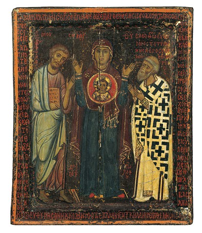 Both the iconography and the artistic abstraction, that mark the icon, point towards comparable works of art made in the Holy Land.