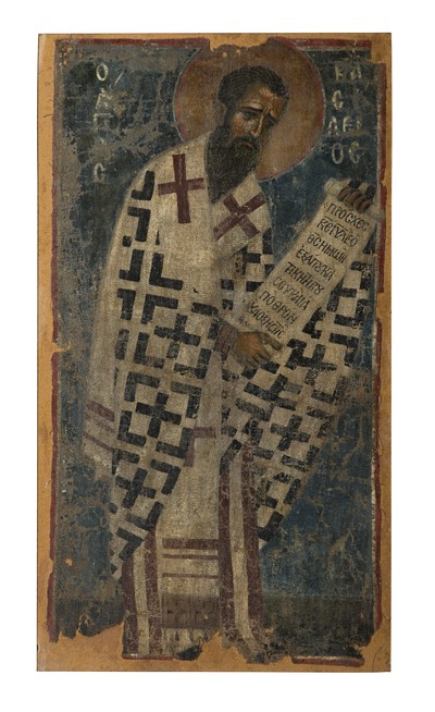 Each of the two figures of the Annunciation scene is portrayed standing under an arch. The two arches are flanked by flower vases (planters) with decorative plants covering the rest of the vestment. The scenes are embroidered on red silk fabric. The typology of the arches and flower vases, the cross over the angel halo, and the arch rendered with stiches instead of stones, are all characteristic details of the Sinopi workshop in the seventeenth century.