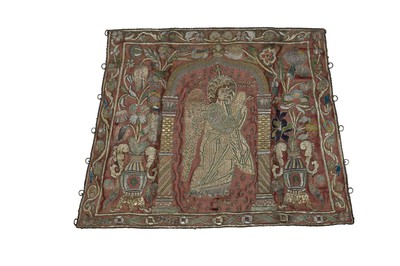 Flesh tones are rendered using darker stitches of straw-colored silk. The whole composition appears to be the work of a highly accomplished monastic workshop. The sakkos was purportedly owned by Cyril (1759-1790), but must be quite a bit older, as is also attested by the “Property Inventory of Cyril”, drawn up after his death, which does not include this vestment.