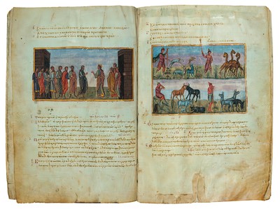 From the Palaeologan era (thirteenth century) the elderly Evangelist is portrayed seated, listening to the voice of God. Later on, the cave of the Revelation on Patmos island is added to the iconography. Even though the identity of the painter has been disputed, there is no doubt about the authenticity of the work.