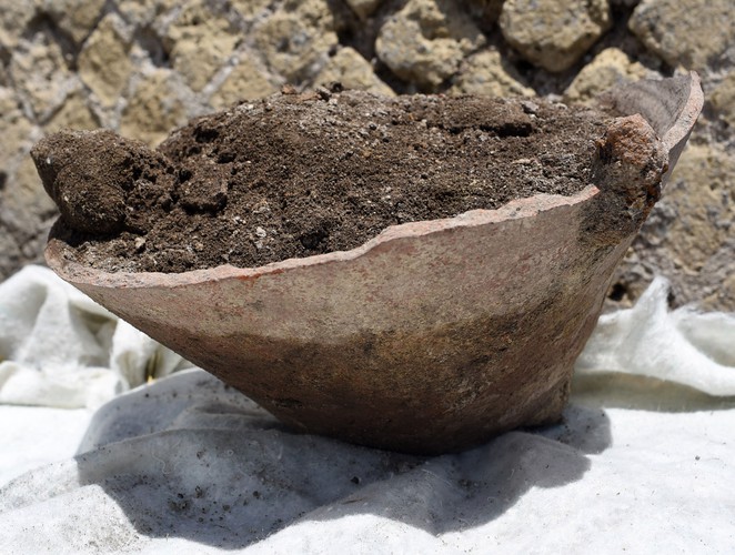 05 / 27 Bottom of a vessel with fill inside Save Share Ask Question The Venus Pompeiana Project at Pompeii Archaeological Park Save Share Ask Question Data 05/29/2019 Dimensioni H 18.5 cm; preserved Diameter 30 cm; Wall thickness 4-6 mm Tipologia Ceramic Context Miniature Vessel Trench II S. Base of vessel, containing organic … Bottom of a vessel with fill inside Roman Occupation Bronze coin Roman Occupation Bronze coin Iron shaft Trench A. Iron object. Shaft of something, quadrangular … Worked seashell Trench A. Worked element piece of seashell. Explore chevron-right