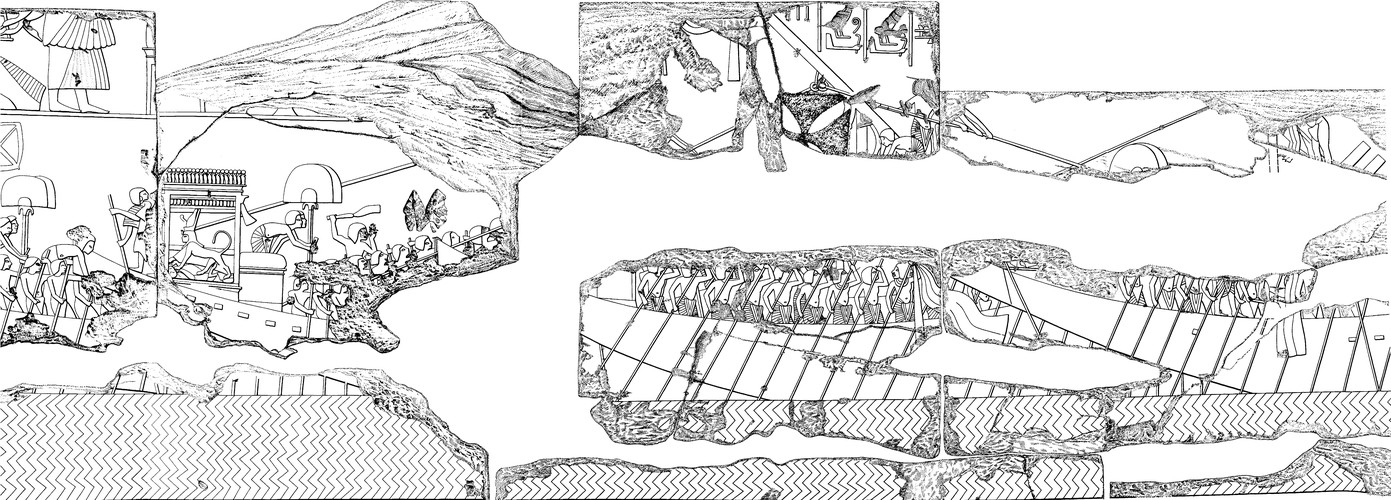 The Barks of Amun (Now Lost), Khonsu, and Mut being Carried from Karnak Temple to the Nile: Detail of Plate 12