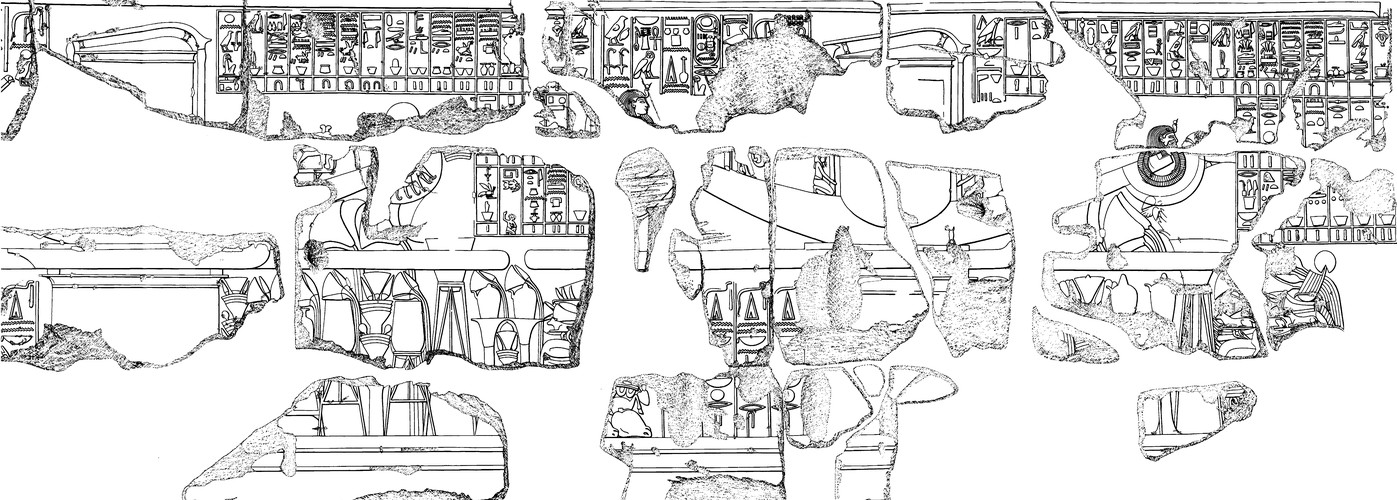 East wall, northern section. See plates 101-117; in situ these reliefs are continuous.