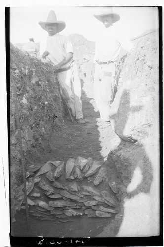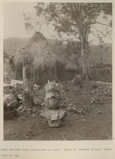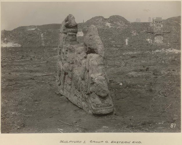594 / 906 Sculpture 1, Group G, eastern end Save Share Ask Question Copán Ruinas Archaeological and Conservation Project Save Share Ask Question Copan Album: Volume 1, Page 25; Written on page: "Sculpture 1. Group G. Eastern end" Classification Terms Maya Department Photographic Dimensions Overall: 14.9225 × 20.32 cm (5 7/8 × 8 in.) Materials Albumen print adhered to Paper in Album Object Number 2004.1.381.1.25 Origin Terms Copan See Also https://collections.peabody.harvard.edu/objects/details/749746 Obsidian "Copan Blades" as found Detail of Hieroglyphic Stairway at Copan Hieroglyphic stairway, structure at foot, looking north Copan Album: Volume 11, Page 16 Detail of full figure glyphs from Temple 26 Full figure glyphs, Temple 26. Copan, Honduras. Sculpture 1, Group G, eastern end Copan Album: Volume 1, Page 25; Written on … Fragment of Stela 5 Copan Album: Volume 8, Page 22; Written on … Explore chevron-right