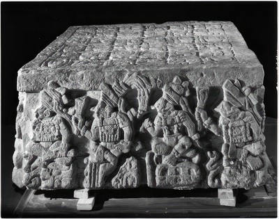 023 / 906 Altar K, eastern side Save Share Ask Question Copán Ruinas Archaeological and Conservation Project Save Share Ask Question Copan Album: Volume 1, Page 35; Written on page: "Altar K. Eastern side" Classification Terms Maya Department Photographic Dimensions Overall: 14.9225 × 20.32 cm (5 7/8 × 8 in.) Materials Albumen print adhered to Paper in Album Object Number 2004.1.381.1.35 Origin Terms Copan See Also https://collections.peabody.harvard.edu/objects/details/749763 Sculpture O, western side Copan Album: Volume 1, Page 41; Written on … Stela and structure at Copan Copan exhibit in Museum of Science, June 1981 South side of Stela B Written on board: Copan / South Side of … Ventana from eastern court, main structure Copan Album: Volume 2, Page 26; Written on … Cast of Altar Q Cast of Altar Q. Copan. Encounters. T1518 Explore chevron-right