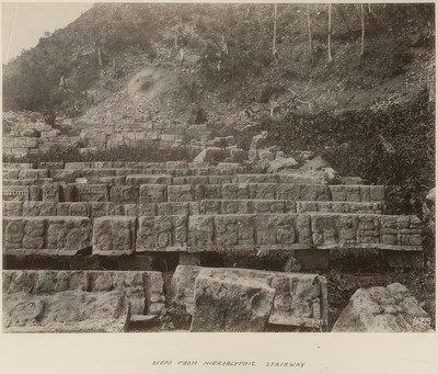 605 / 906 Sculpture O, southern end Save Share Ask Question Copán Ruinas Archaeological and Conservation Project Save Share Ask Question Copan Album: Volume 1, Page 42; Written on page: "Sculpture O. Southern end" Classification Terms Maya Department Photographic Dimensions Overall: 15.5575 × 20.6375 cm (6 1/8 × 8 1/8 in.) Materials Albumen print adhered to Paper in Album Object Number 2004.1.381.1.42 Origin Terms Copan See Also https://collections.peabody.harvard.edu/objects/details/749777 Stela F at Copan Hieroglyphic stairway, cleared 1899-1900, showing blocks from debris and Mound 26 Copan Album: Volume 10, Page 31 Front of circular Stela 11 Copan Album: Volume 7, Page 16; Written on … Altar of Stela N, western side Copan Album: Volume 6, Page 29; Written on … Hieroglyphic stairway, structure at foot, detail south side Copan Album: Volume 11, Page 12 Sculpture Fragment Explore chevron-right