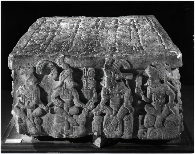 268 / 906 Eastern side of Altar Q Save Share Ask Question Copán Ruinas Archaeological and Conservation Project Save Share Ask Question Copan Album: Volume 1, Page 47; Written on page: "Eastern side of Altar Q" Classification Terms Maya Department Photographic Dimensions Overall: 15.875 × 20.32 cm (6 1/4 × 8 in.) Materials Albumen print adhered to Paper in Album Object Number 2004.1.381.1.47 Origin Terms Copan See Also https://collections.peabody.harvard.edu/objects/details/749782 Ruins at Copan Cast of Altar Q Cast of Altar Q. Copan. Encounters. T1518 Fallen Stela 5 and pedestal, looking north Copan Album: Volume 8, Page 14; Written on … Stela N, southern front, looking down from top of Mound 11 Copan Album: Volume 6, Page 24; Written on … Sculpture from western court Copan Album: Volume 6, Page 41; Written on … General view of mountainous landscape Explore chevron-right
