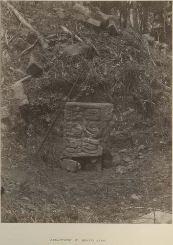 496 / 906 Northern side of Stela 2 Save Share Ask Question Copán Ruinas Archaeological and Conservation Project Save Share Ask Question Copan Album: Volume 2, Page 15; Written on page: "Northern side of Stela 2" Classification Terms Maya Department Photographic Dimensions Overall: 19.685 × 15.5575 cm (7 3/4 × 6 1/8 in.) Materials Albumen print adhered to Paper in Album Object Number 2004.1.381.1.63 Origin Terms Copan See Also https://collections.peabody.harvard.edu/objects/details/749857 Sculpture Y, west side, as found in 1895 Copan Album: Volume 8, Page 10; Written on … Western side of Mound 9 Copan Album: Volume 8, Page 30; Written on … Sculpture Z, west side Copan Album: Volume 8, Page 3; Written on … Sculpture Z, south side Copan Album: Volume 8, Page 4; Written on … Terraces northwest corner of Mound 21 and back wall of building 21A Copan Album: Volume 3, Page 30; Written on … Head and bust from slope north of Temples 21 and 22, front Copan Album: Volume 9, Page 47; Written on … Explore chevron-right