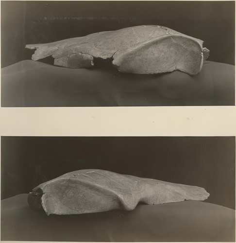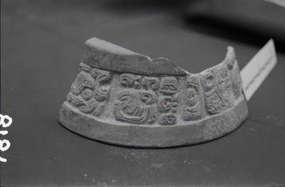 Copan Album: Volume 2, Page 19; Written on page: "Altar in front of fallen Stela 4, looking west, showing stela in background"