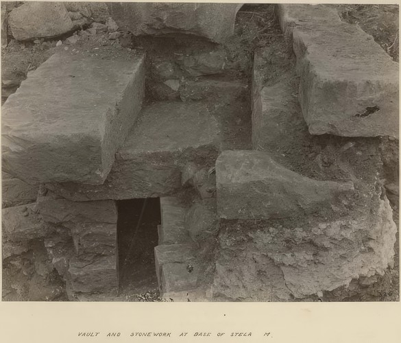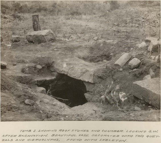Copan Album: Volume 3, Page 8; Written on page: "Western end of Chamber 2, Md. 50, showing back wall built on terrace / of Pyramid 16."