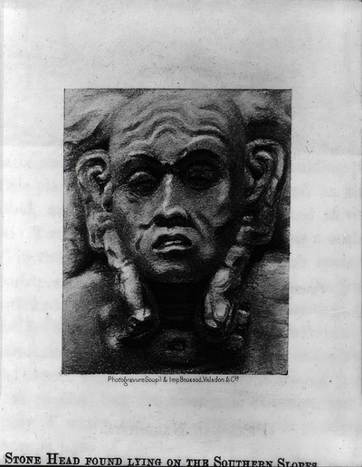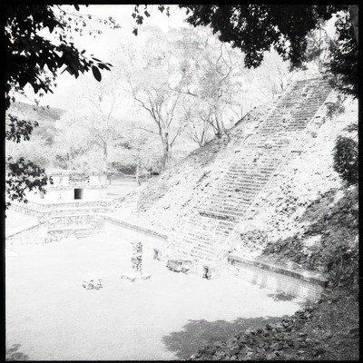 Copan Album: Volume 3, Page 29; Written on page: "Rooms of building 21A between Mds. 21 and 22 from N.W. corner of Md. 21. Tem- / ple 22 in background."