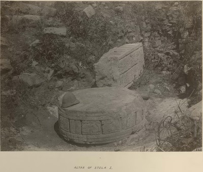 Copan Album: Volume 3, Page 30; Written on page: "Terraces N.W. corner of Md. 21 and back wall of building 21A / between Mds. 21 and 22 from N.E. corner terrace of Temple 22."