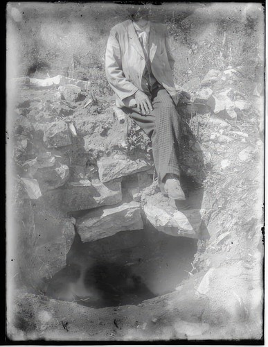 Copan Album: Volume 4, Page 17; Written on page: "Entrance of Tomb 3, after excavation, showing roof / stone and large ants' nest taken frfom western end of tomb."
