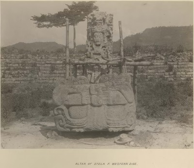 136 / 906 Child sitting on Altar S, eastern side Save Share Ask Question Copán Ruinas Archaeological and Conservation Project Save Share Ask Question Copan Album: Volume 6, Page 32; Written on page: "Altar S. Eastern side." Classification Terms Maya Department Photographic Dimensions Overall: 15.24 × 20.32 cm (6 × 8 in.) Materials Albumen print adhered to Paper in Album Object Number 2004.1.381.1.267 Origin Terms Copan See Also https://collections.peabody.harvard.edu/objects/details/750199 Fountain Stela C, looking north Copan Album: Volume 1, Page 11; Written on … Plan of the Principal Structures of Copan showing Mound 32 Written on board: Ruins of Copan / Peabody … Foundation and base of wall of building top of Mound 32, looking north Copan Album: Volume 3, Page 40; Written on … View looking west from main structure Copan Album: Volume 9, Page 48; Written on … Stela C, looking south Copan Album: Volume 1, Page 12; Written on … Explore chevron-right