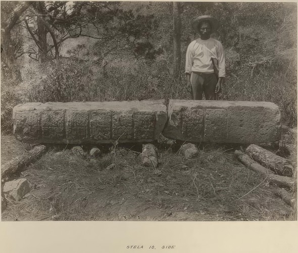 344 / 906 Grand Plaza from Mound 7 showing six months growth of bush Save Share Ask Question Copán Ruinas Archaeological and Conservation Project Save Share Ask Question Copan Album: Volume 7, Page 22; Written on page: "Grand Plaza from Mound 7 showing six months growth of bush." Classification Terms Maya Department Photographic Dimensions Overall: 14.605 × 20.6375 cm (5 3/4 × 8 1/8 in.) Materials Albumen print adhered to Paper in Album Object Number 2004.1.381.1.303 Origin Terms Copan See Also https://collections.peabody.harvard.edu/objects/details/750246 Stone grotesque head with tenon from dig Grotesque head with tenon - from General Diggings. … Serpent's tail sculpture from hieroglyphic stairway Copan Album: Volume 7, Page 31; Written on … Camp tent with artifacts in the opening Stela 10 on its side Copan Album: Volume 7, Page 13; Written on … Stela 10 on its side Copan Album: Volume 7, Page 15; Written on … "The Ball Court" "The Ball Court." Copan, Honduras. Watercolor. Explore chevron-right