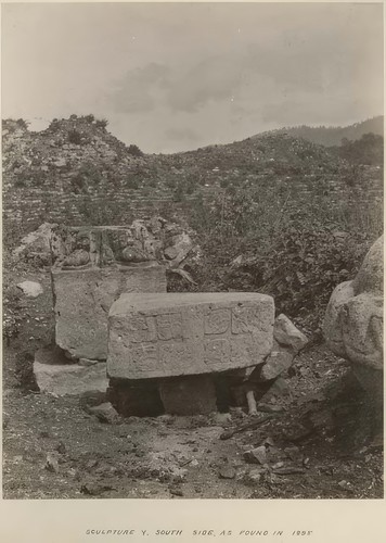 613 / 906 Sculpture Y, north side, as found in 1895 Save Share Ask Question Copán Ruinas Archaeological and Conservation Project Save Share Ask Question Copan Album: Volume 8, Page 11; Written on page: "Sculpture Y. North side, as found in 1895" Classification Terms Rubble Wall Department Photographic Dimensions Overall: 19.685 × 14.9225 cm (7 3/4 × 5 7/8 in.) Materials Albumen print adhered to Paper in Album Object Number 2004.1.381.1.337 Origin Terms Copan See Also https://collections.peabody.harvard.edu/objects/details/556210 Subject Terms Maya Reviewing stand at Copan Teeth from graves at Copan Written on board: (verso) Copan, Honduras View from Copan River of high cut made by it into the ruins Western side of Stela D Copan Album: Volume 1, Page 14; Written on … Sculpture Y, south side, as found in 1895 Copan Album: Volume 8, Page 9; Written on … Rooms of building 21A between Mounds 21 and 22 from northwest corner of Mound 21 Copan Album: Volume 3, Page 29; Written on … Explore chevron-right