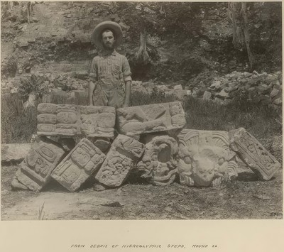 089 / 906 Base of fallen Stela 5, showing pedestal Save Share Ask Question Copán Ruinas Archaeological and Conservation Project Save Share Ask Question Copan Album: Volume 8, Page 15; Written on page: "Base of fallen Stela 5. Showing pedestal." Classification Terms Rubble Department Photographic Dimensions Overall: 14.9225 × 20.0025 cm (5 7/8 × 7 7/8 in.) Materials Albumen print adhered to Paper in Album Object Number 2004.1.381.1.341 Origin Terms Copan See Also https://collections.peabody.harvard.edu/objects/details/556214 Subject Terms Maya Teeth from graves at Copan Written on board: (verso) Copan, Honduras Back of Stela H Copan Album: Volume 1, Page 29; Written on … Sculpture X, north side Copan Album: Volume 8, Page 17; Written on … Restoration drawing of the Ball Court at Copan - T. Proskouiakoff Hieroglyphic stairway, central section cleared 1899-1900 steps between structure Copan Album: Volume 11, Page 7 Stela 3 Explore chevron-right