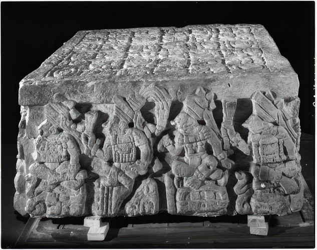 611 / 906 Sculpture X, south side Save Share Ask Question Copán Ruinas Archaeological and Conservation Project Save Share Ask Question Copan Album: Volume 8, Page 19; Written on page: "Sculpture X. South side" Classification Terms Rubble Department Photographic Dimensions Overall: 14.9225 × 20.32 cm (5 7/8 × 8 in.) Materials Albumen print adhered to Paper in Album Object Number 2004.1.381.1.345 Origin Terms Copan See Also https://collections.peabody.harvard.edu/objects/details/556218 Subject Terms Maya Base of fallen Stela 5, showing pedestal Copan Album: Volume 8, Page 15; Written on … West side of Mound 26 before clearing hieroglyphic stairway Copan Album: Volume 7, Page 26; Written on … Altar M, head in place, south side Copan Album: Volume 11, Page 24 Cast of Altar Q Cast of Altar Q. Copan. Encounters. T1518 Sculptures from hieroglyphic stairway Copan Album: Volume 9, Page 15; Written on … Peabody Expedition members using large view camera on tripod Written on board: Honduras / Copan / see … Explore chevron-right