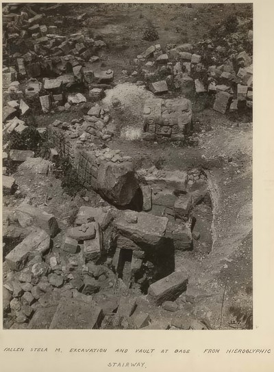 651 / 906 Sculptures from hieroglyphic stairway Save Share Ask Question Copán Ruinas Archaeological and Conservation Project Save Share Ask Question Copan Album: Volume 9, Page 17; Written on page: "Sculptures from hieroglyphic stairway" Classification Terms Rubble Glyph Stairway Department Photographic Dimensions Overall: 14.605 × 20.32 cm (5 3/4 × 8 in.) Materials Albumen print adhered to Paper in Album Object Number 2004.1.381.1.391 Origin Terms Copan See Also https://collections.peabody.harvard.edu/objects/details/556264 Subject Terms Maya Copan exhibit in Museum of Science, June 1981 Copan exhibit in Museum of Science, June 1981 Marker from Copan Upper or main building, Mound 32, looking west showing step to rear room Copan Album: Volume 3, Page 38; Written on … Top of Altar Q Copan Album: Volume 6, Page 30; Written on … Spondulus jade bead cache Spondulus jade bead cache. Copan. Tomb 4. T1552. Explore chevron-right
