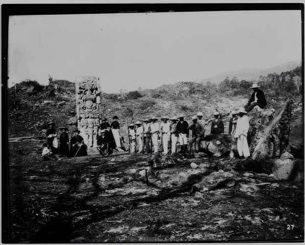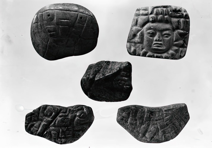 Copan Album: Volume 9, Page 46; Written on page: "Head and bust from slope north of Temples 21 and 22, same head as / 396 and 397."