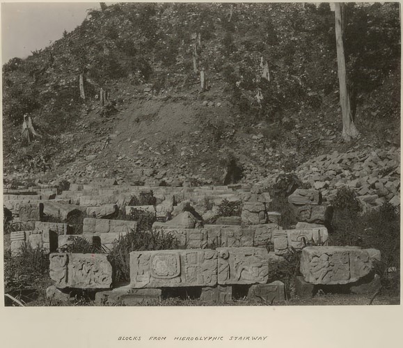 025 / 906 Altar M, head in place, north side Save Share Ask Question Copán Ruinas Archaeological and Conservation Project Save Share Ask Question Copan Album: Volume 11, Page 23 Classification Terms Maya Department Photographic Dimensions Overall: 15.5575 × 20.4788 cm (6 1/8 × 8 1/16 in.) Materials Albumen print adhered to Paper in Album Object Number 2004.1.381.1.493 Origin Terms Copan See Also https://collections.peabody.harvard.edu/objects/details/750780 Incense Burner Peabody Museum - Central American Room - Sculptures from Copan (Cases) Eastern part of main structure across Plaza Written on board: Honduras / Copan / Eastern … Carved peccary skull found near Skeleton 2 Tomb 1 Copan Album: Volume 4, Page 13 Sculpture Y, north side, as found in 1895 Copan Album: Volume 8, Page 11; Written on … Blocks from hieroglyphic stairway Copan Album: Volume 9, Page 35; Written on … Explore chevron-right