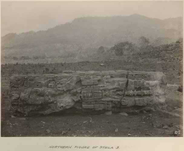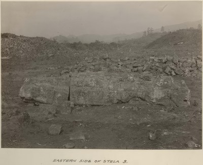 Written on board: Piedra Pintada. Broken stela in woods esat of Main Structure. / Copan.