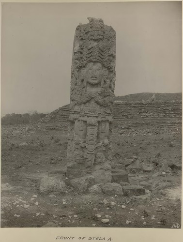Written on board: Eastern side of Stela 3. / First time photographed. / Copan.