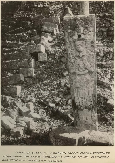 269 / 906 Eastern side of Altar in front of Stela D Save Share Ask Question Copán Ruinas Archaeological and Conservation Project Save Share Ask Question Written on board: Copan / Eastern side of Altar in front of Stela D. Classification Terms Archaeological Sculpture Department Photographic Dimensions Overall: 15.24 × 20.32 cm (6 × 8 in.) Materials Albumen print adhered to Paperboard Object Number 2004.29.7723 Origin Terms Copan See Also https://collections.peabody.harvard.edu/objects/details/655770 Subject Terms Ruin Copan exhibit in Museum of Science, June 1981 View showing eastern part of main structure across plaza, looking south-southeast Copan Album: Volume 2, Page 43; Written on … Sculptured stone in backyard Pension Rodriquez (reputedly from Copan) Blocks from hieroglyphic stairway Copan Album: Volume 9, Page 37; Written on … Stela A Written on board: Honduras / Copan / Stela … Man standing next to Altar U, southern side Copan Album: Volume 6, Page 38; Written on … Explore chevron-right
