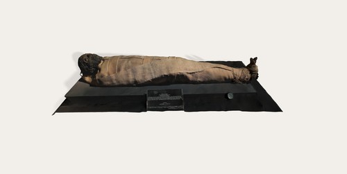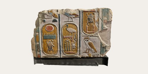 Importantly, the two figures are seamlessly integrated as a singular construction, a distinctive characteristic of Old Kingdom design. Adding to this feature are three hieroglyphic inscriptions which identify the figures and speak to their societal roles.