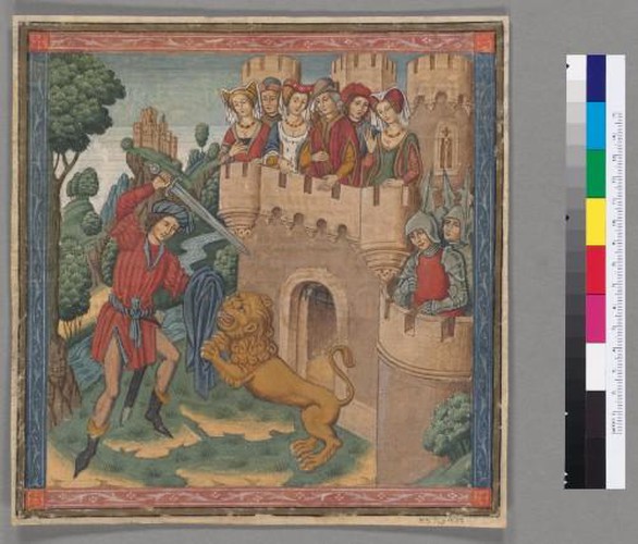 019 / 214 Book of hours (“De Buz Hours”), use of Paris Save Share Ask Question Beyond Words Illuminated Manuscripts in Boston Save Share Ask Question Parchment, ff. 197, 233 x 170 (118 x 80) mm Collection Houghton Library Date c. 1420–25 External Link http://nrs.harvard.edu/urn-3:FHCL.HOUGH:1841631 Institution Harvard University Map PDFs Place Angers, France Shelfmark MS Richardson 42 Topics Illumination Knight holding a banner and lady holding two leaves, cuttings Parchment, 135 x 60 mm (knight), 128 x … Book-binding Gilbert de la Porrée, Commentary on the Epistles of St. Paul Book of hours Parchment, ff. 111, 332 x 235 mm Book of hours, use of the Windesheim Congregation (Hours of the Virgin) and use of Utrecht (Office of the Dead) Parchment, ff. i (conjoint of the pastedown) + … Office of the Dead from a book of hours Parchment, 1 leaf, 184 x 136 (140 x … Knight slaying a lion before a city gate with spectators (cutting) Parchment, 237 x 231 mm Explore chevron-right
