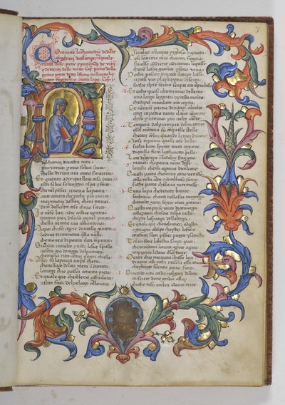 197 / 214 St. Augustine, La Cité de Dieu, trans. Raoul de Presles Save Share Ask Question Beyond Words Illuminated Manuscripts in Boston Save Share Ask Question Parchment, 3 vols., ff. 318, 480 x 333 (317–20 x 220–22, vol. 1) (322 x 222, vol.2) (325 x 222–24, vol. 3) mm Collection Houghton Library Date c. 1375 External Link http://nrs.harvard.edu/urn-3:FHCL.HOUGH:3109942 Institution Harvard University Map PDFs Place Paris, France Shelfmark MS Typ 201 Latin-English medical compendium Paper, ff. 71, 140 x 100 (90 x … Folded calendar (March–December) Parchment, ff. 10, 35 x 20 mm (folded), … Chained Books Johannes Nider, Sermones de tempore et de sanctis cum quadragesimali Paper, ff. 372 (1, 358, and 372 are … James of Milan, Stimulus divini amoris (ff. 1r–89r); Isaac of Nineveh, De contemplationis perfectione (ff. 90r–162r) Parchment, ff. 162, 170 x 120 (ff. 1–89: … Manuel Philes, Stichoi peri zōōn idiotētos Paper, ff. iii + 61 + ii, 235 … Alain Chartier, Le quadrilogue invectif, Dialogus familiaris amici et sodalis, and Le Livre de l’Espérance Parchment, ff. 103, 297 x 220 (208 x … Explore chevron-right