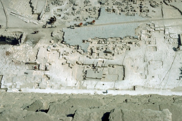 Above the stela and beneath the beard of the Sphinx, a small statue was placed also so that viewers who stood in front of the stela between the paws of the Sphinx would see the face of the statue beneath or overlapping the face of the Sphinx. Around the stela was a small chapel.