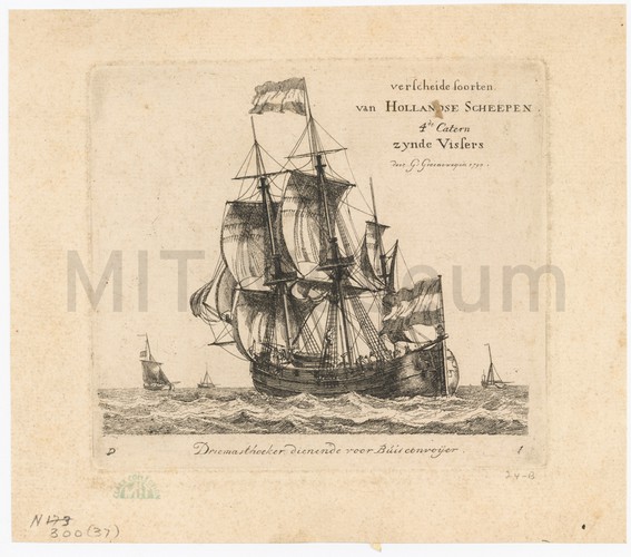 A photo-processed print reproduction of a painting by A. Cary Smith. The yacht 'Magic,' presumably in the center, sails towards the right leading a pack of yachts sailing in the same direction. A typed inscription at the bottom notes that scene takes place in the waters off Point Judith in Rhode Island.