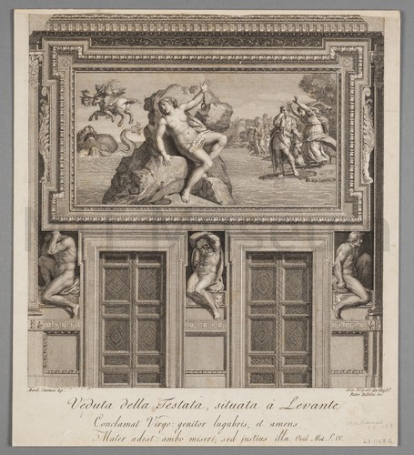 Engraving depicting four fishing vessels, as seen from the coast with a fisherman raising his net in the immediate foreground. Each vessel is labeled with a number corresponding to the type-names in the description, which is printed in the lower margin. Number of print in series and artist attribution also printed in lower margin.