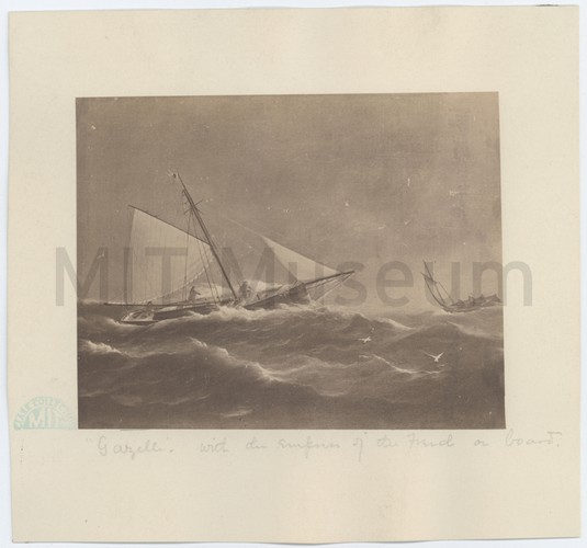A view of the port-side (right) and three-quarter view of the port-side and stern (left) of the same British clipper/packet, 'Transit.' Designed by Richard Hall Gower, the 'Transit' was an experimental vessel that possessed many clipper-ship characteristics. She had a concave bow, even keel, a foremast stepped back, and the greatest breadth of beam located at the center rather than far forward. In June 1801, she raced against the sloop 'Osprey' and was reported to have had a great advantage. Despite proving herself as a fast-sailing vessel, she failed to attract interest from the Hon. East India Company and the Royal Mail.