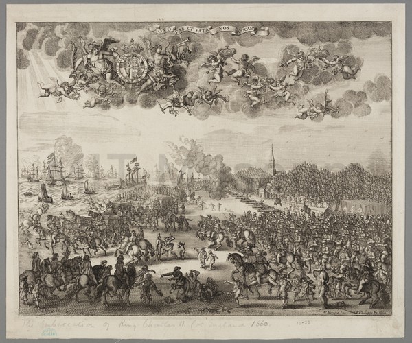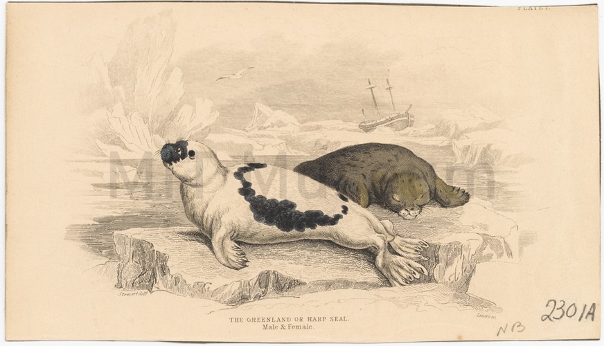 Hand-colored etching depicting a harpooner on a whaleboat about to plunge his weapon into the back of a spouting whale. With a ship flying the British naval jack in the background.